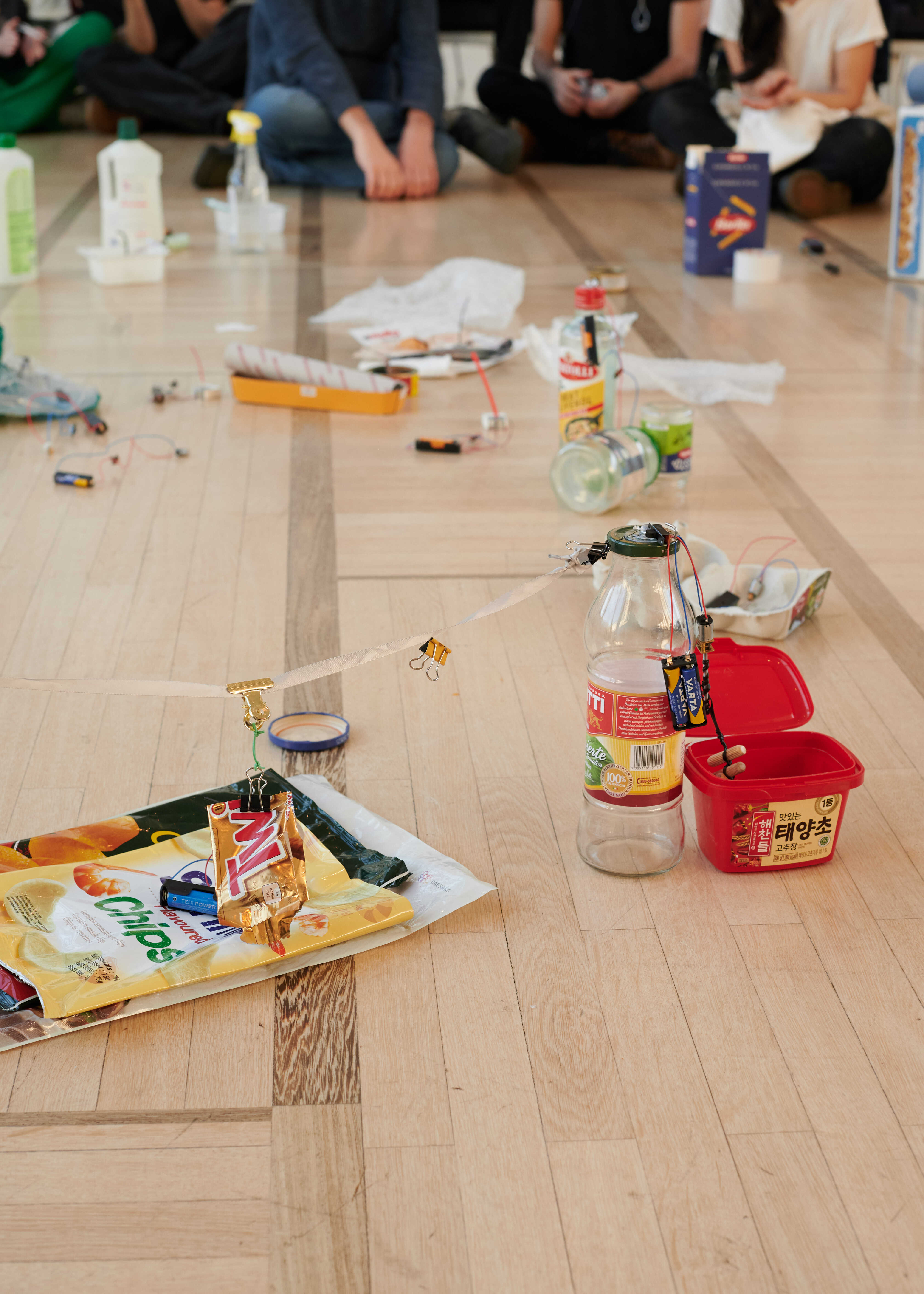 Par l’expérimentation ludique et une écoute attentive, les objets commencent à générer des rythmes et des textures inattendus. À mesure que ces sons s’accumulent, ils forment progressivement un environnement sonore partagé, créé collectivement par le groupe.